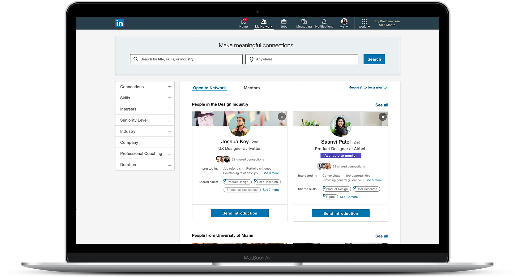 Improving the networking feature set on LinkedIn by promoting meaningful professional connections and mentorship opportunities