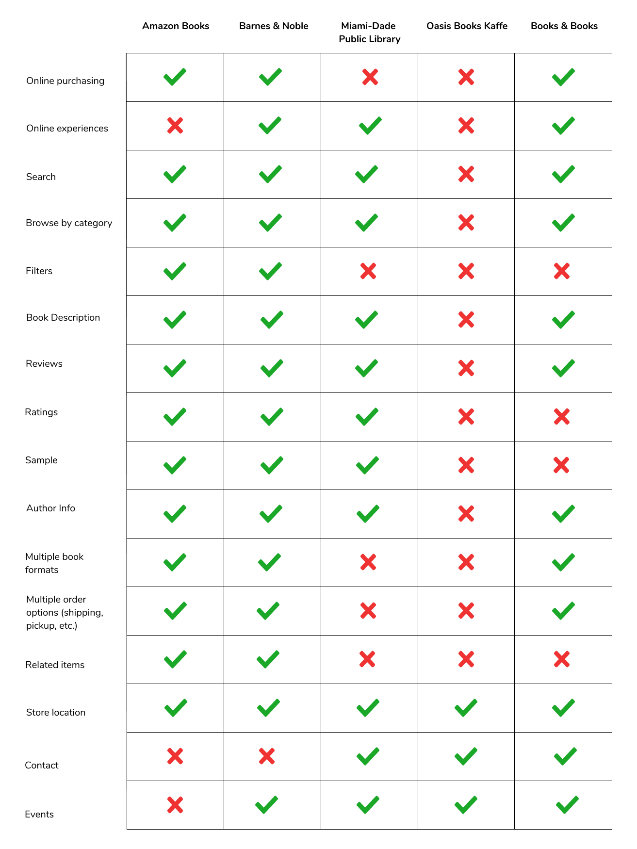 I analyzed the UI and features of competitor websites in order to gain a better understanding of industry standards. I then compared these to the Books & Books website.