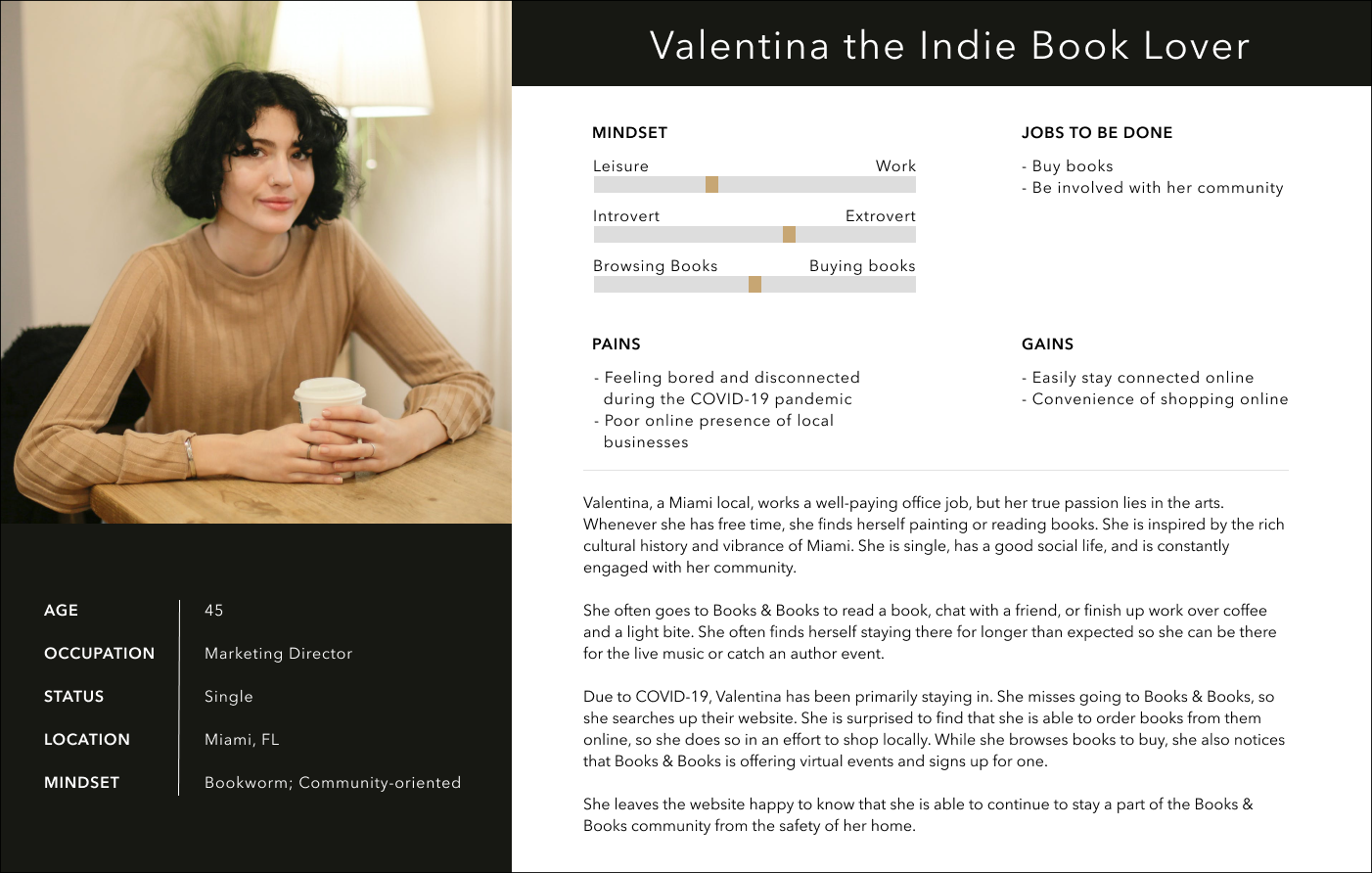 Based on my research, I created a persona that is reflective of the typical Books & Books customer.