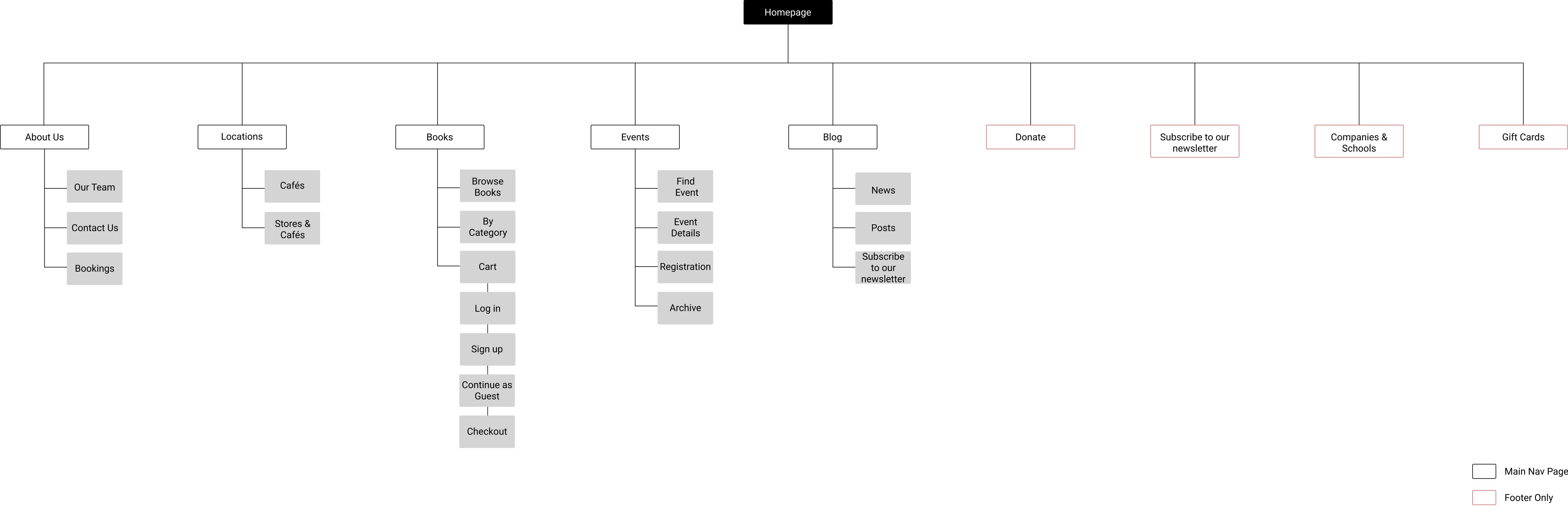 I built a sitemap in order to unravel the information and content on the current Books & Books website.